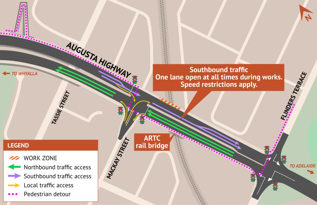As part of ongoing maintenance and rectification activities, kerbing remediation works will be undertaken on the bridge over the ARTC rail line on Victoria Parade, in the southbound lanes between Mackay Street and Flinders Terrace, in Port Augusta.